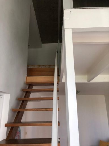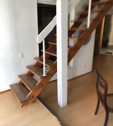 Esse apartamento foi totalmente reformado e a parte de cima foi aproveitada por inteiro, criando um andar independente e um apartamento muito maior.